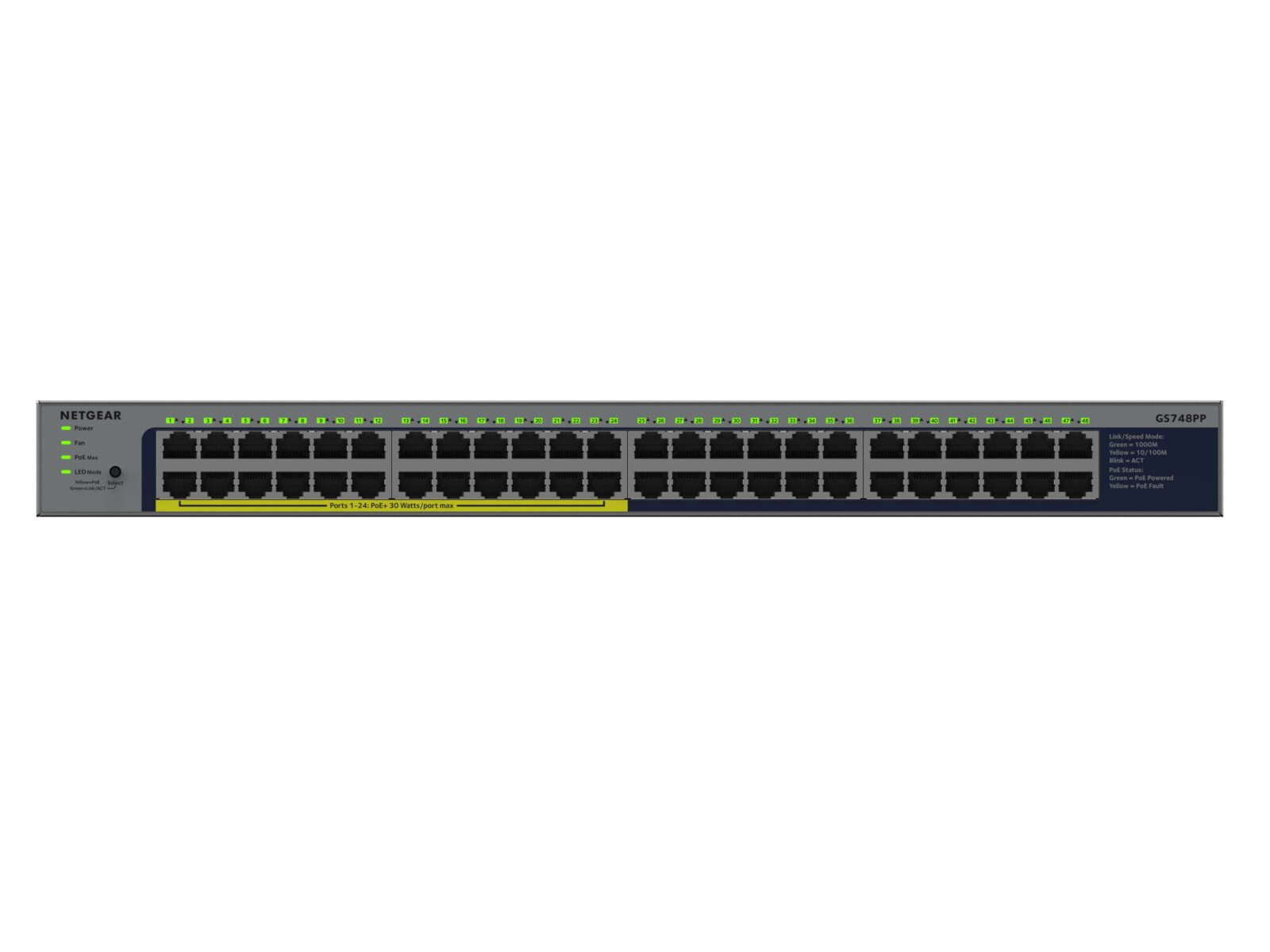 NETGEAR GS748PP 48-Port Gigabit Ethernet Unmanaged PoE+ Switch