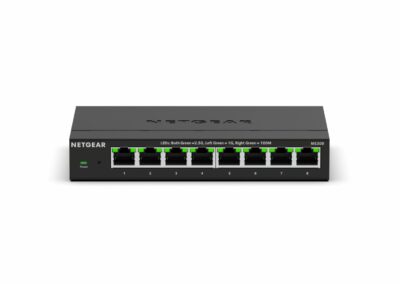 The NETGEAR 8-port 2.5G Multi-Gigabit Unmanaged Switch, MS308, offers businesses an affordable solution to upgrade their networks to multi-gig speeds. Featuring eight (8) 2.5G ports encased in durable metal, the MS308 Multi-Gigabit Ethernet Switch is designed for versatility—it can be placed on a desk, mounted on a wall, or under a table using the included kit.